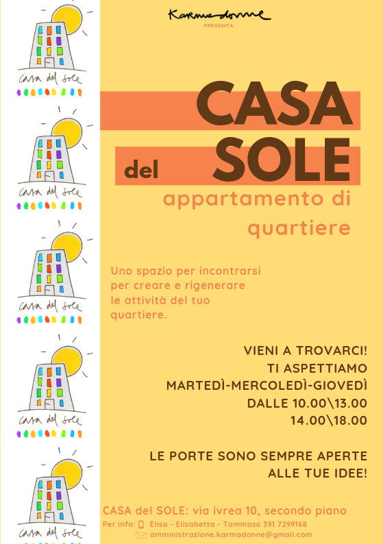 Apre la “Casa del Sole” e siete tutti e tutte invitati alla sua inaugurazione. Vi aspettiamo giovedì 29 dalle ore 16,00 in via Ivrea 10.